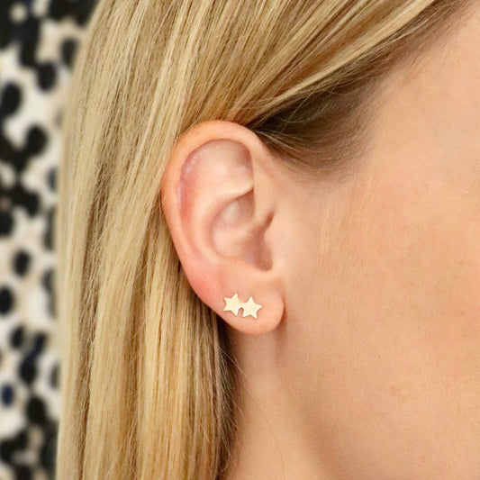 Double Star Stud Earring in 14k Gold (single earring)